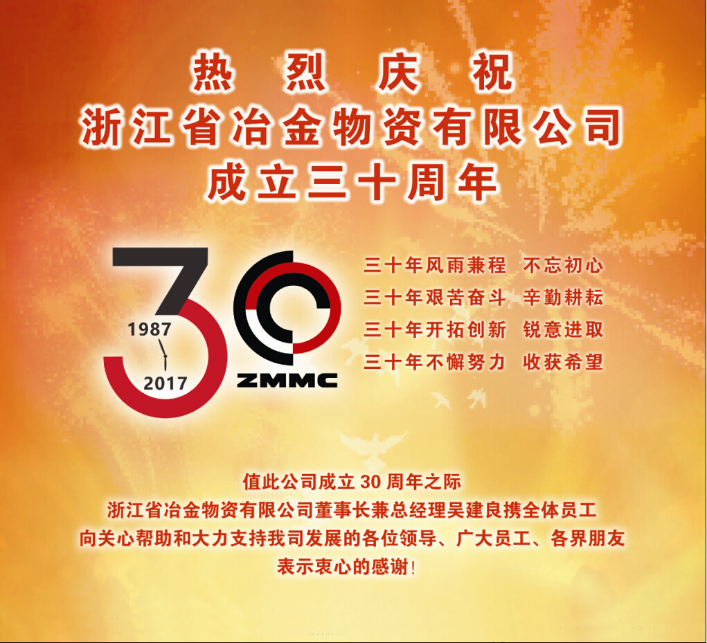 浙江省冶金物資有限公司三十周年發布日期:2017-03-10